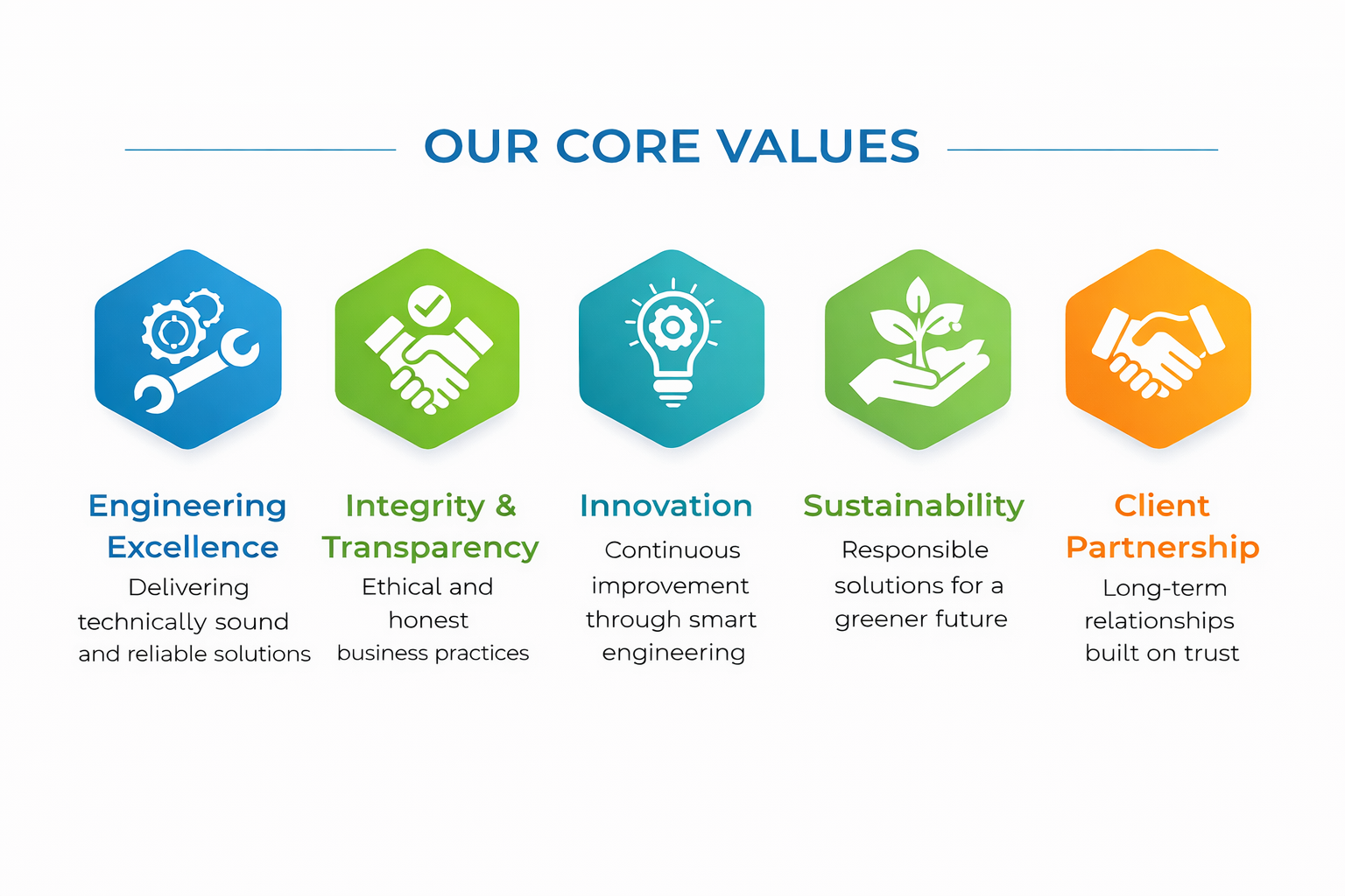 To deliver economical, efficient, and sustainable engineering solutions that help industries improve performance, optimize energy usage, and meet environmental compliance—while creating long-term value for our clients.